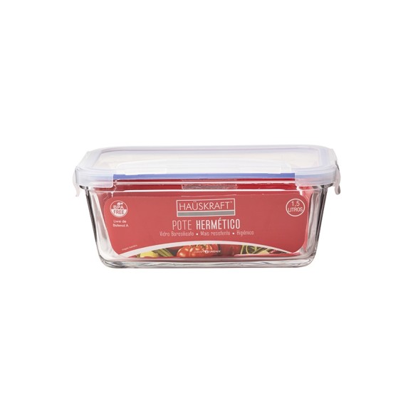 Pote hermético vidro retangular 1,5l c/1pç Prt-1500