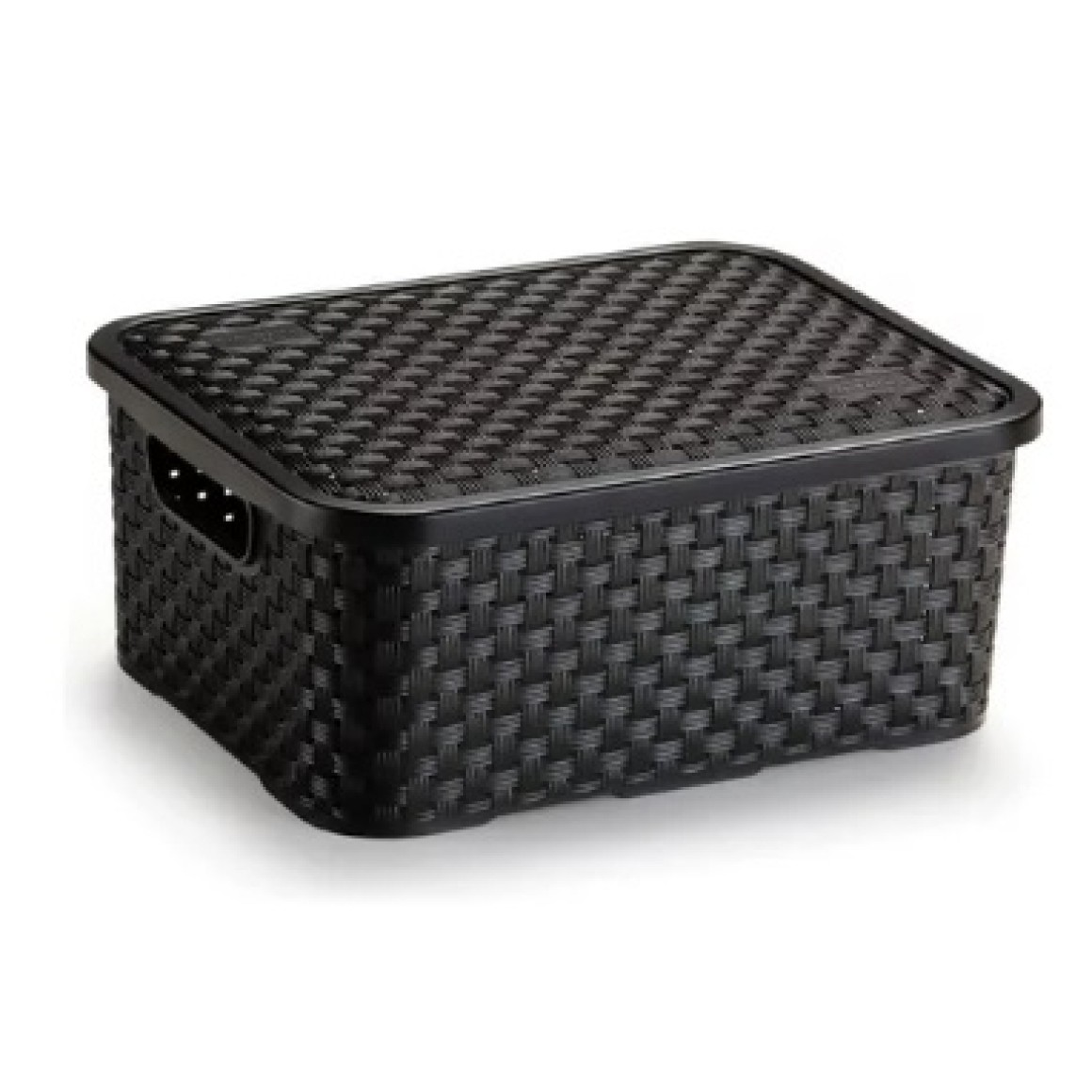 CESTO ECO ORGANIZADOR RATTAN PEQ PRETO C/ TAMPA C/1PÇ 751.012.003 NITRON