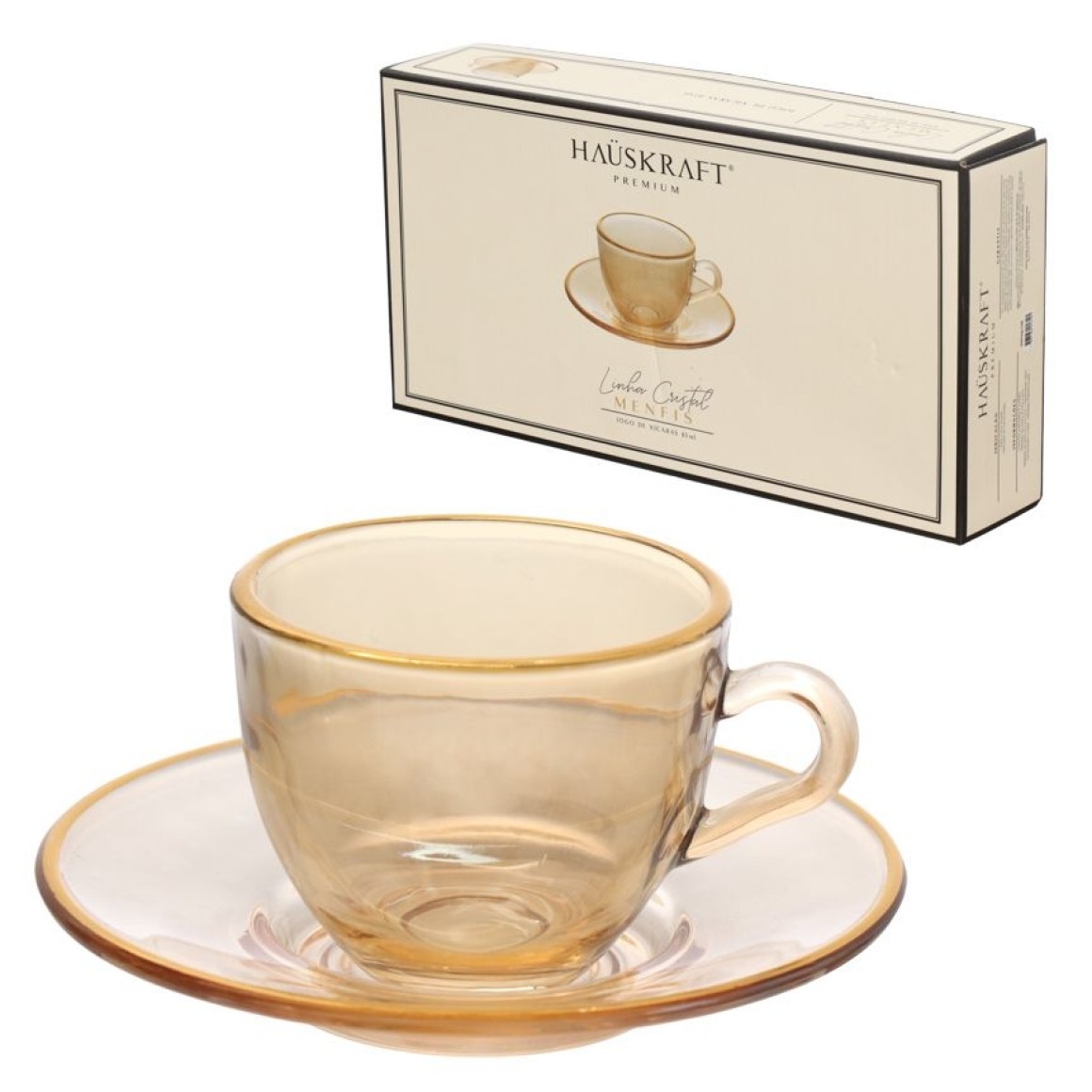 Jogo xícaras para café cristal menfis âmbar com borda dourada 85ml 4 peças
