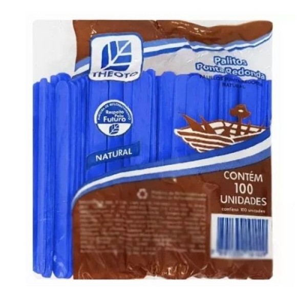 PALITO SORVETE ESCOLAR AZUL PONTA REDONDA C/100PÇS 10CM 1265 51712 THEOTO