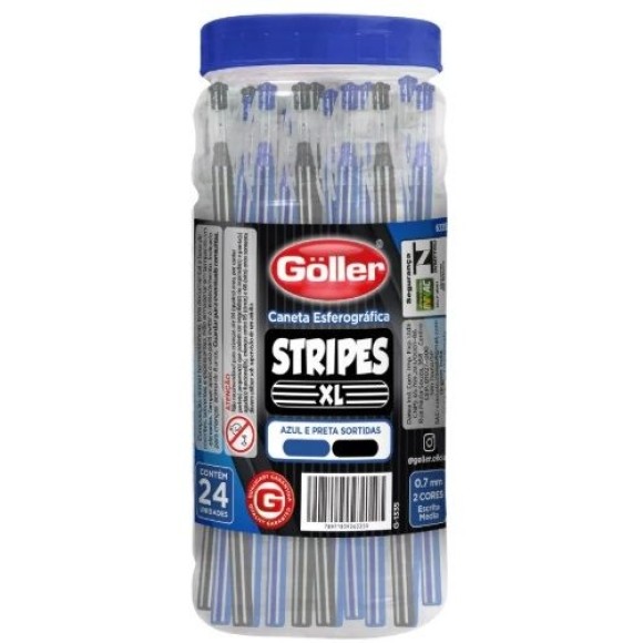 Caneta esferografica stripes xl preta e azul c/24 pçs 0,7mm 6335 g-1335 goller