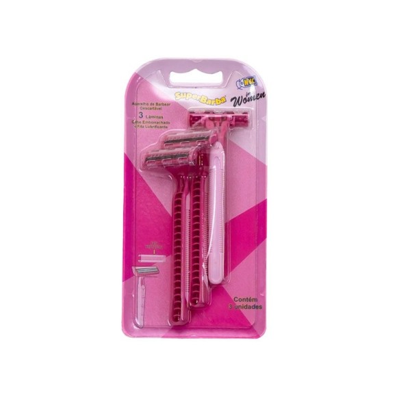Aparelho de barbear rosa com 3 cabo emborrachado nvc