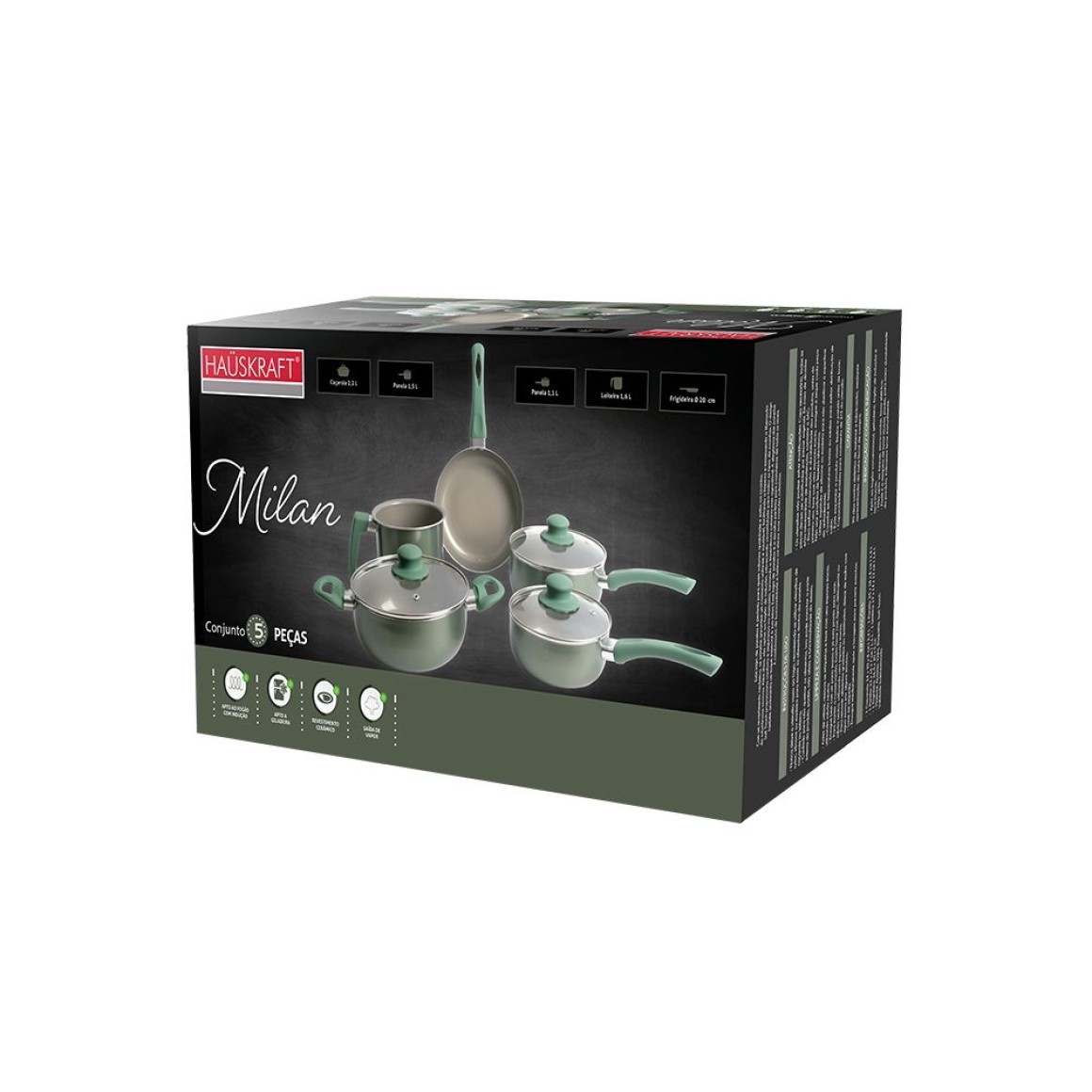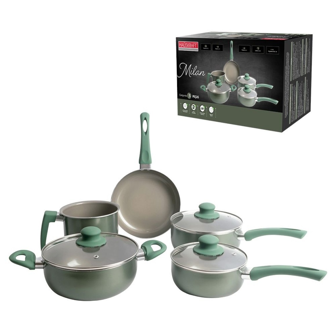 Conjunto de panelas com indução Milan verde 5 peças pan011vd