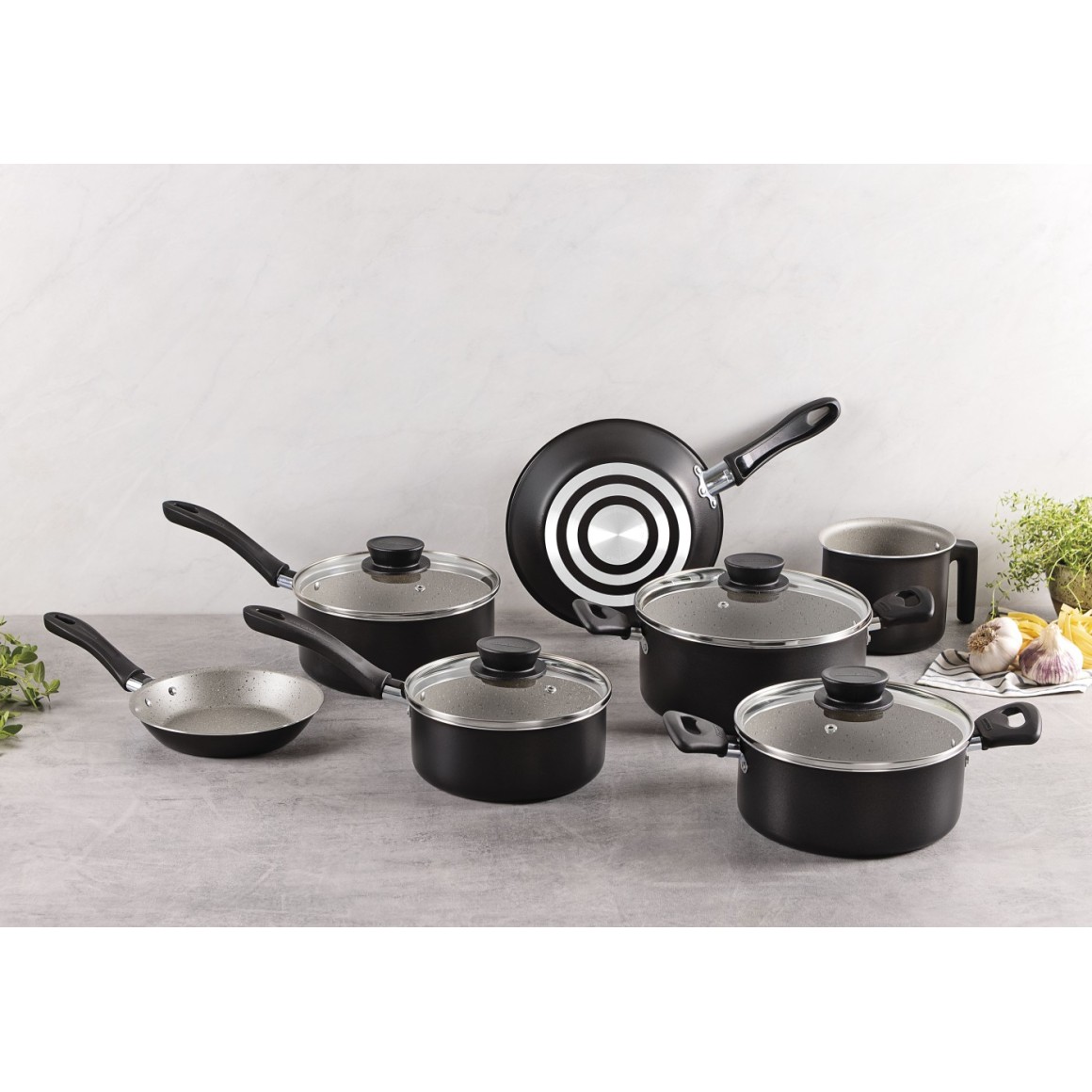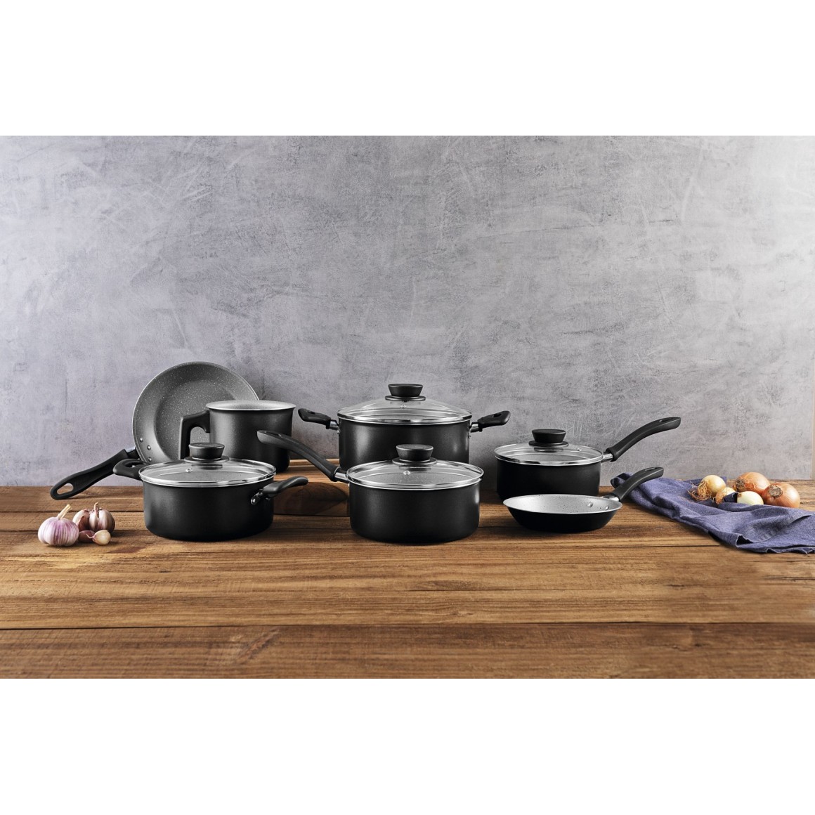Frigideiras, caçarolas e panelas com corpo de alumínio com espessura de 1,2 mm que proporciona cozimento rápido e uniforme. Fervedor com corpo de alumínio com espessura de 1,4 mm. Revestimento interno e externo de antiaderente Starflon Max que não gruda, é fácil de limpar, mais durável e não é prejudicial à saúde, pois é livre de PFOA. Tampas de vidro temperado com bordas de aço inox. Cabos, alças de baquelite antitérmico e pegadores de nylon que oferecem segurança durante o manuseio. Podem ir à máquina de lavar louças facilitando seu dia a dia. Pode ser utilizada nos fogões: gás, elétrico e vitrocerâmico - resistência elétrica.