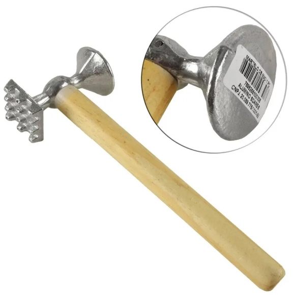 O Martelo Amaciador De Carne Alumínio com cabo em madeira é uma ferramenta essencial para qualquer cozinha. Com um cabo de madeira resistente e confortável,