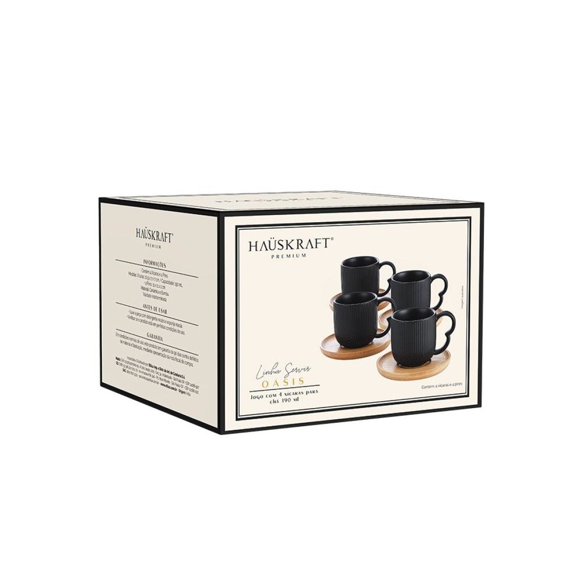 Jogo de xícaras de chá Oasis 190ml 4 peças preto pcln-232pt