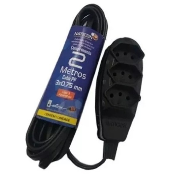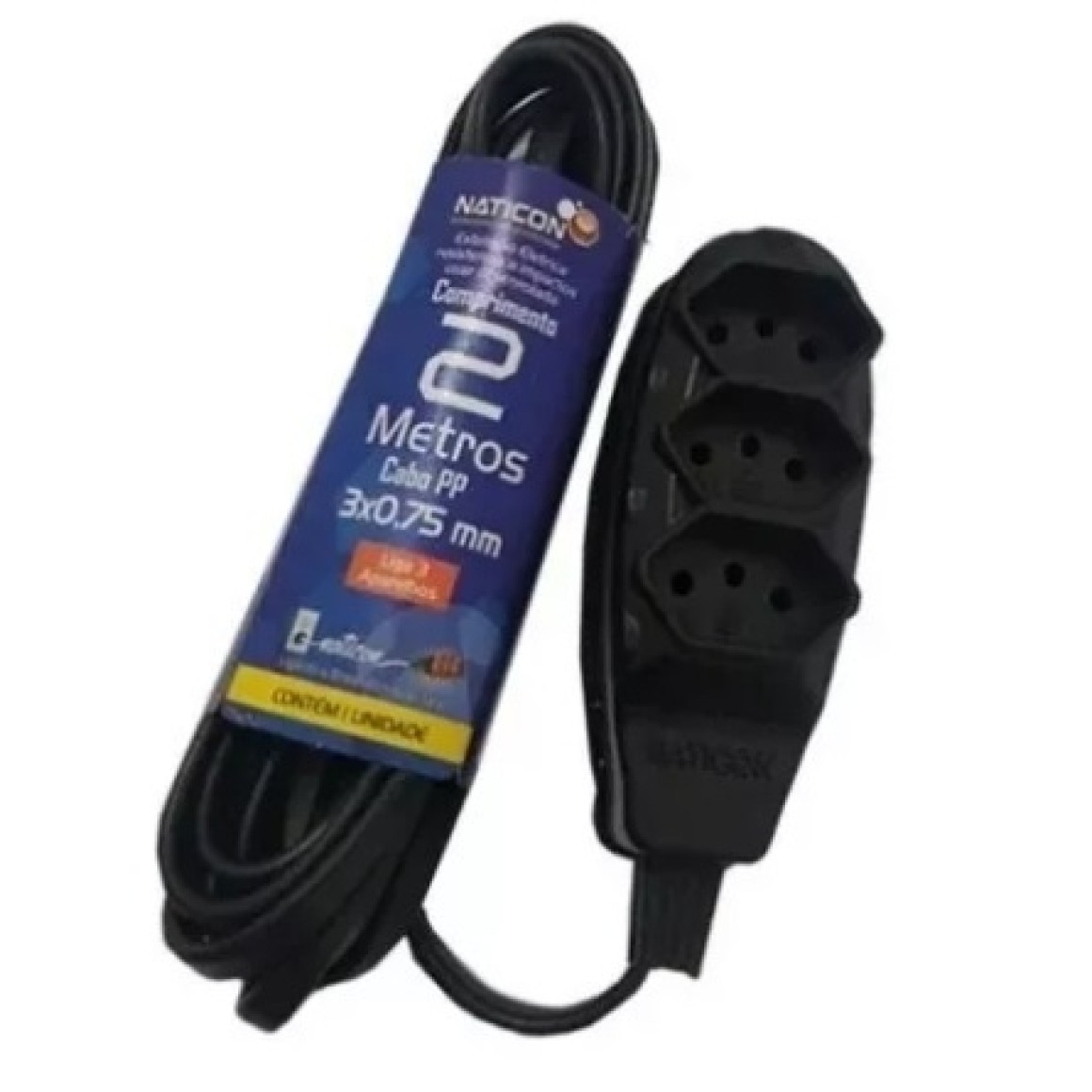 Extensão 02mts 2528 2p + t pto tripolar naticon c/1pç