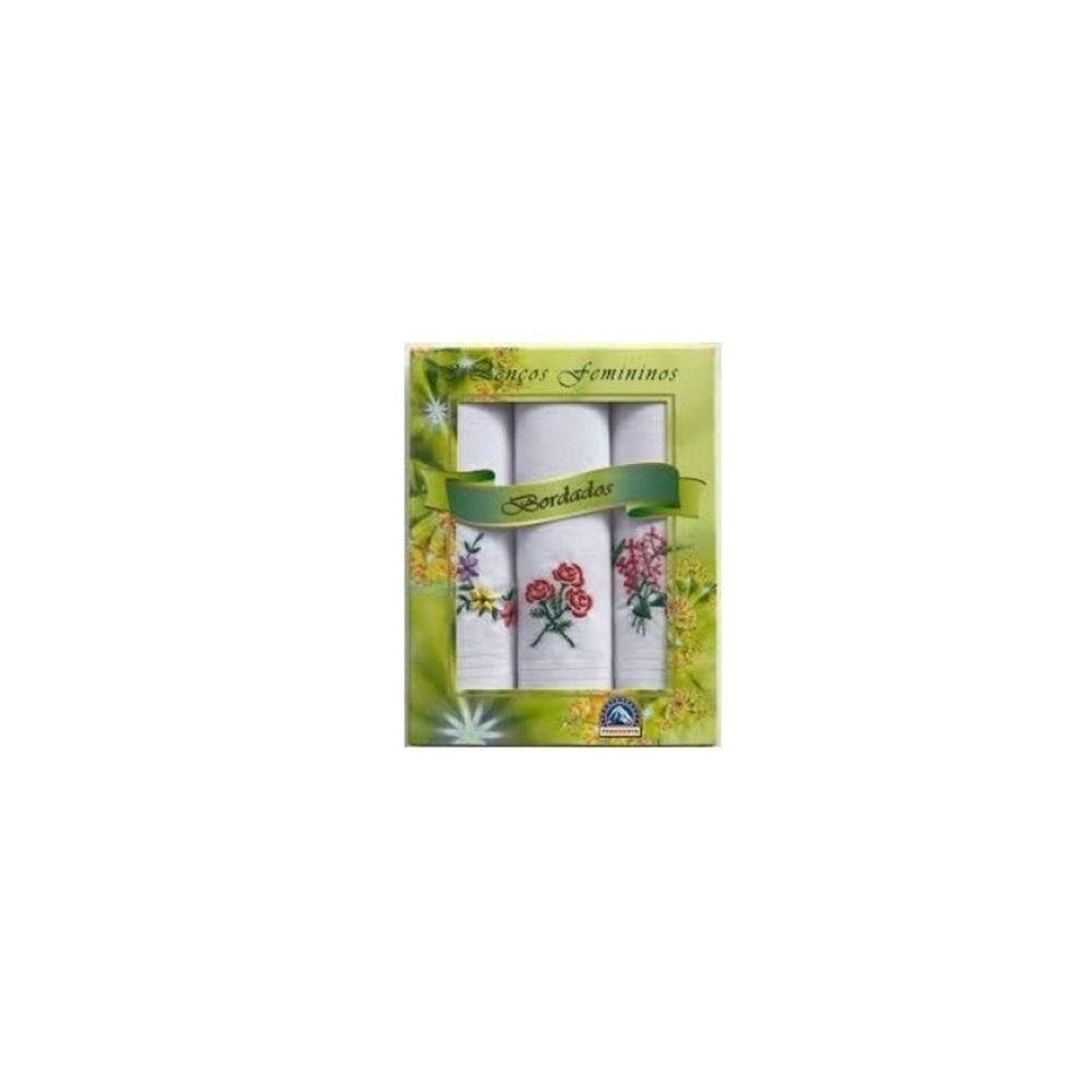 Lenço bordado caixa c/3pçs 30x30cm presidente