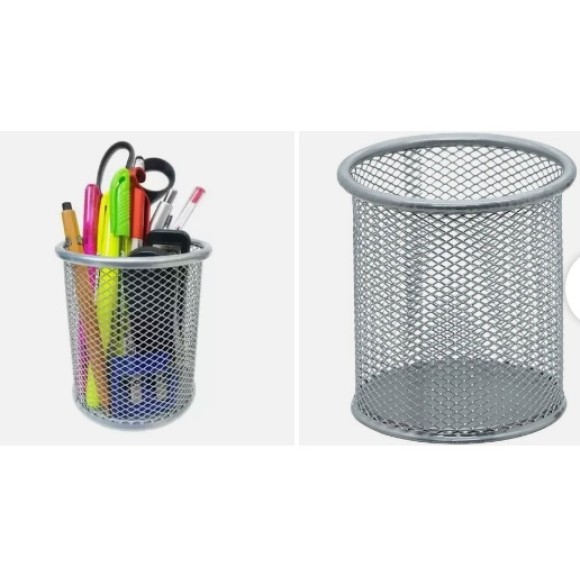 Porta caneta c/1pç 0023 redondo metal prata top mix