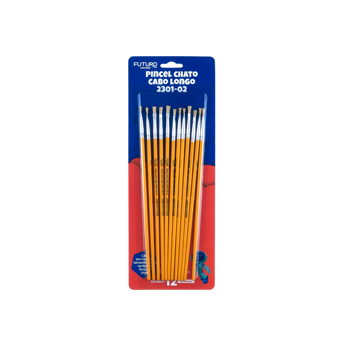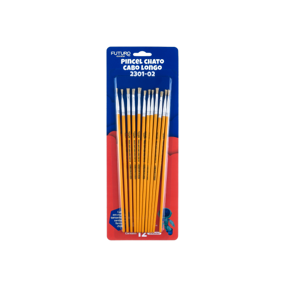 Pincel chato cabo longo 2301-02 c/12pçs futuro fe122201