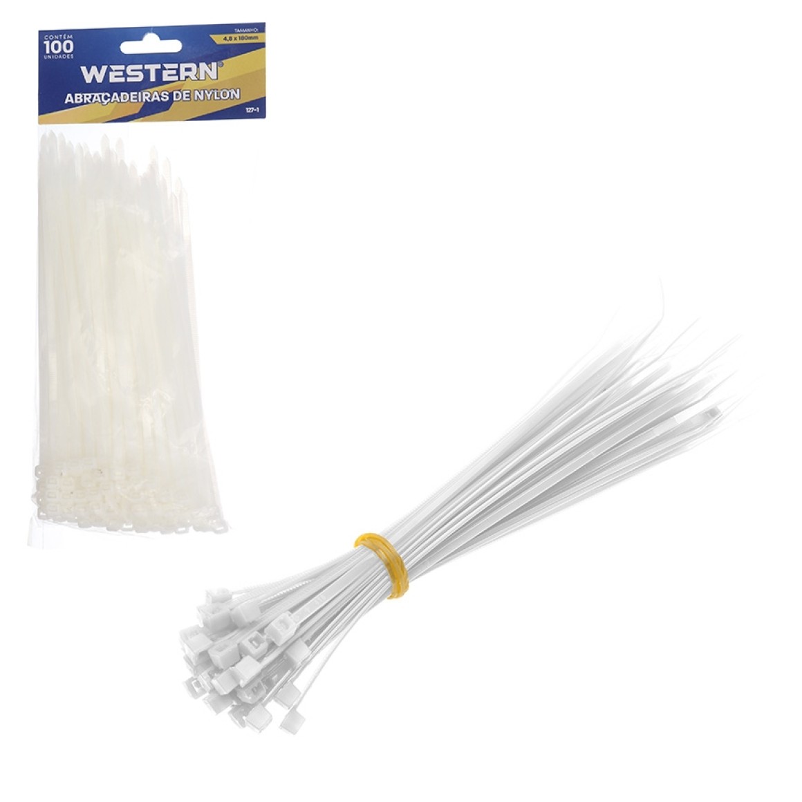 Abraçadeira nylon branca pacote com 100 unidades 4,5mmX180mm 127-1